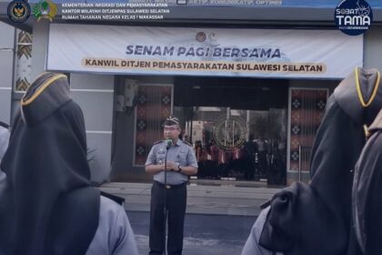 Makassar | BugisMakassar.Info – Rumah Tahanan Negara (Rutan) Kelas I Makassar menggelar apel pagi yang dirangkaikan dengan kegiatan penyematan tanda kenaikan pangkat bagi sejumlah pegawai pada p...