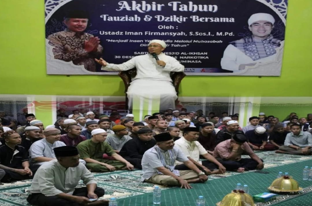 Sungguminasa | BugisMakassar.Info – Jajaran Lembaga Pemasyarakatan (Lapas) Narkotika Kelas IIA Sungguminasa laksanakan Muhasabah Akhir Tahun 2023 bersama Warga Binaan Pemasyarakatan, Sabtu Malam (30/12). Kegiatan bertempat di Masjid Al-Ikhsan Lapas Narkotika Sungguminasa dengan menghadirkan Ustadz Iman Firmansyah selaku Penceramah.