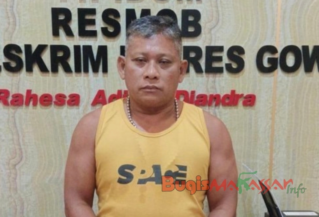Gowa | BugisMakassar.Info – Polisi menampilkan tampang pelaku bernama Muh Sabil Dg Ewa (50) diamankan di Mapolres Gowa, Sulawesi Selatan (Sulsel) usai menikam 2 orang tetangga mertua menantu hingga tewas setelah menegur memutar musik keras.